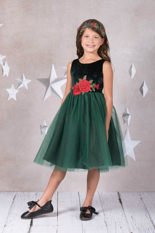 Velvet Rose Patch Girl Party Dress by AS396 Kids Dream - Girl Formal Dresses