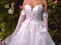 Floral Appliqued Sweetheart Neckline Short Bridal Gown by Andrea and Leo WL020