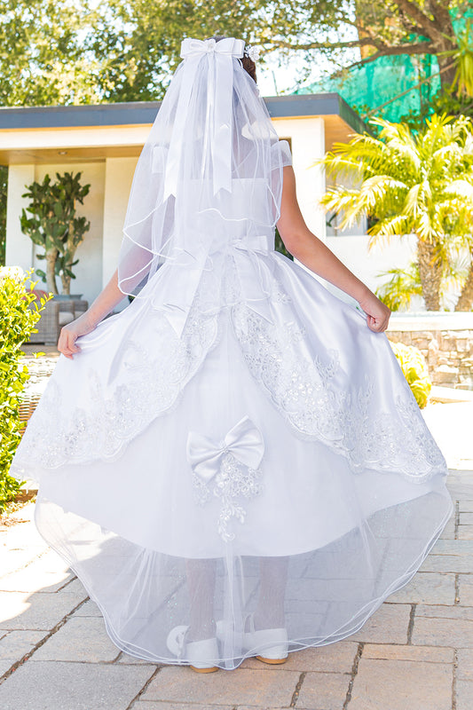 Elegant Satin Cap Sleeve Girl Communion Dress by Cinderella Couture USA AS2911