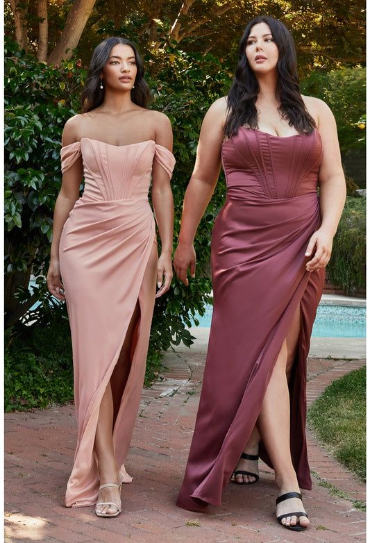 Off the Shoulder Corset Soft Satin Dress - Cinderella Divine 7484 - Special Occasion