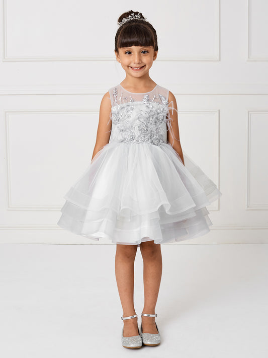 Girl Dress with Gorgeous 3D Flowers and Feathers Dress by TIPTOP KIDS - AS5800