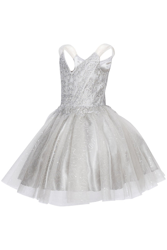 Pearl Beaded Floral Glitter Tulle Party Dress by Cinderella Couture USA AS9022