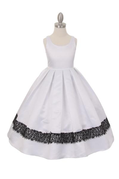 Satin Flower Lace Trim Girl Dress - Cinderella Couture USA AS1069
