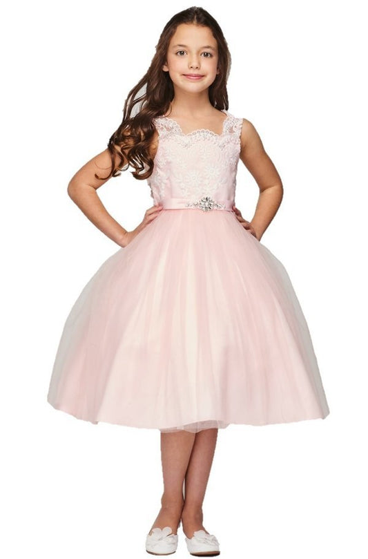 Floral Bodice Lace Tulle Flower Girl Dress by Cinderella Couture USA AS5035