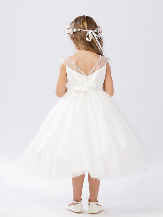 Flower Girl Illusion Neckline Bodice Dress by TIPTOP KIDS - AS5822