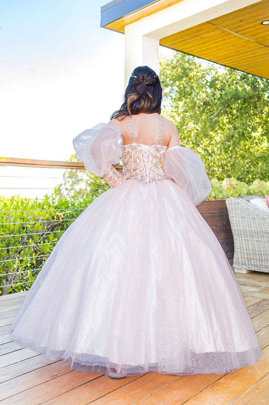 Cinderella Couture USA AS5163 Satin Glittered Tulle Mini Quince Gown