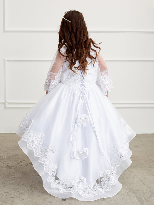 Flower Girl Dress with long Mesh Sleeves and Organza Overlay by TIPTOP KIDS - AS1201