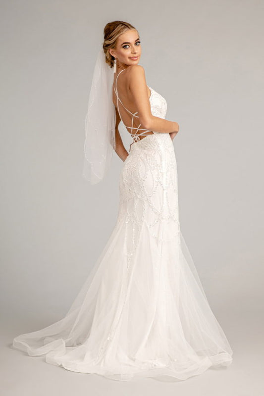 GL2934 GLS by Gloria - Spaghetti Strap V-Neck Mermaid Bridal Gown