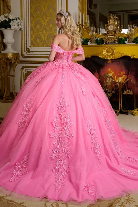 3D Floral Applique Off Shoulder Quinceanera Dress by Elizabeth K - GL3635