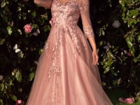 Long Sleeve Layered Tulle A-Line Gown by Cinderella Divine MA108 - Special Occasion/Curves