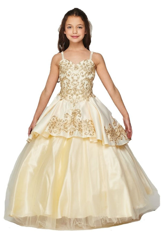 Embellished Glitter Cut-Away Shoulder Kids Dress by Elizabeth K - GK110