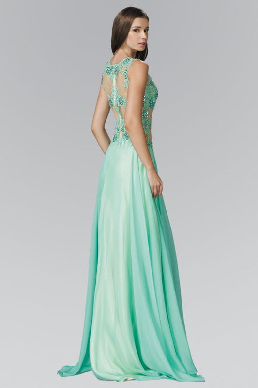 Embellished Illusion Deep V-Neck Dress - GL2891 Elizabeth K