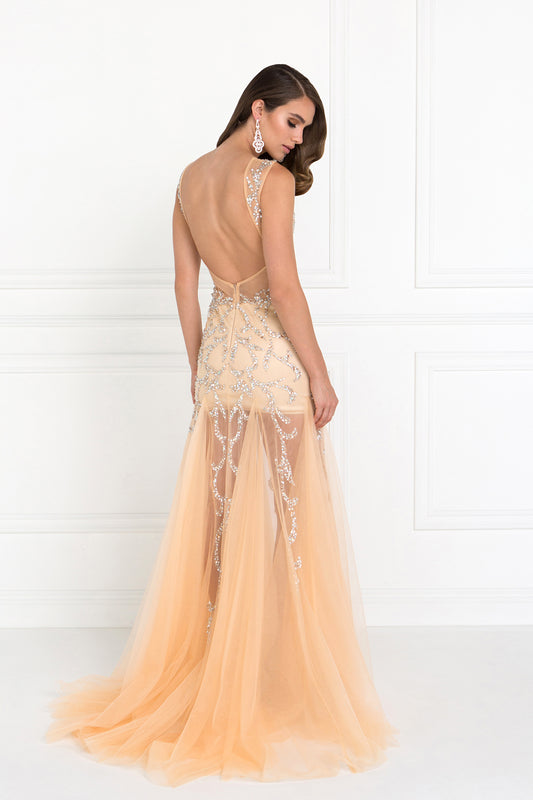 Elizabeth K - GL2938 - Mesh V-Neck Mermaid Dress