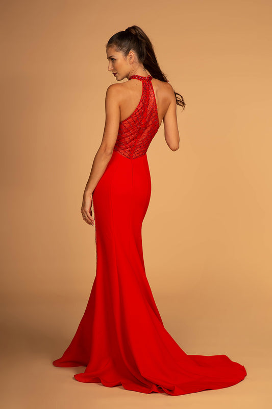Elizabeth K - GL2231 - Embroidered Halter Neck Mermaid Dress