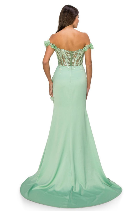 3D Floral Off The Shoulder Leg Slit Gown by Cinderella Divine CD005 - Special Occasion