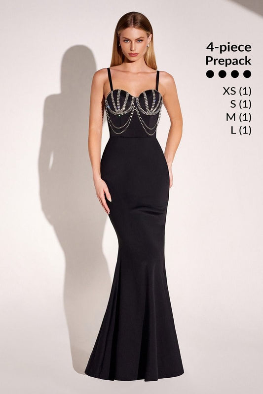 Crystal Floral V-Neckline Mermaid Gown By Ladivine J881 - Women Evening Formal Gown - Special Occasion/Curves