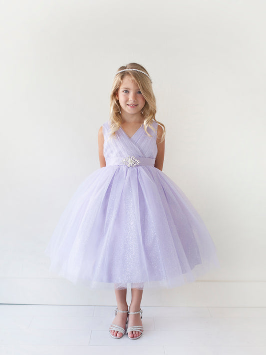 Girl Dress with Glitter V-Neck Tulle Dress by TIPTOP KIDS - AS5698
