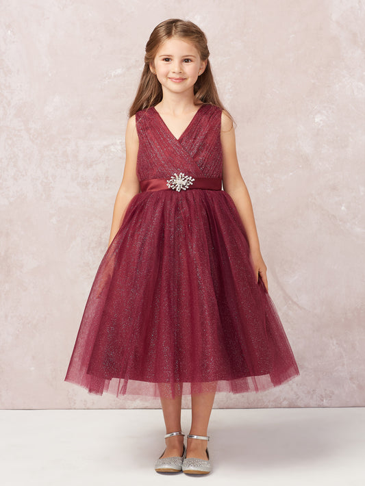 Baby Girl Glitter V Neck Tulle Dress by TIPTOP KIDS - AS5698S