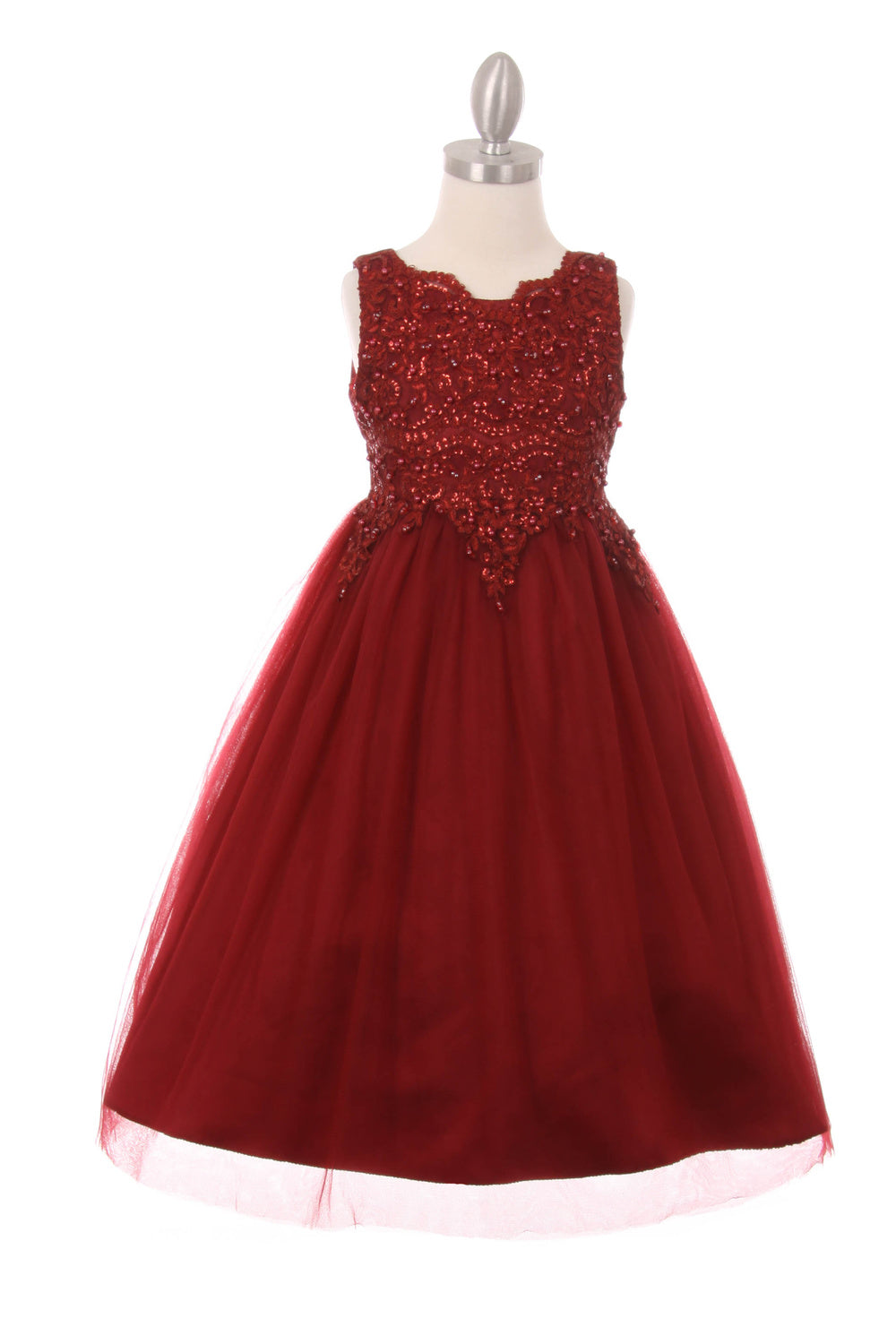 Pearl Sequins Tulle Party Dress with Satin Bow by Cinderella Couture USA AS5008