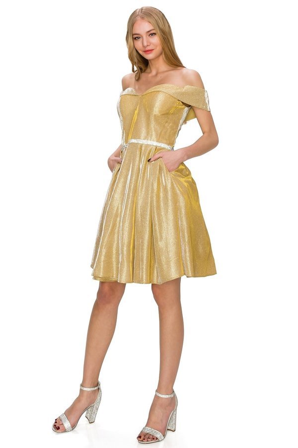 Glitter Metallic Short Party Dress by Cinderella Couture USA AS8012J-GOLD