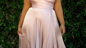 Classic and timeless, 7485C. Classic and timeless, 7485 is a stunning piece that will flatter any body type. Created with soft satin fabrication, this dress features a sweetheart neckline, flowy skirt with an elegant leg opening.