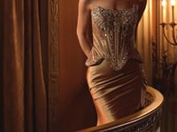 • Fabric & Material: Embellished boned corset & stretch satin skirt