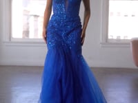 • Fabric and Details: Back Zipper, Soft Bra Cup Inserts, Fully lined, Open back, Strapless, Sequin, Tulle