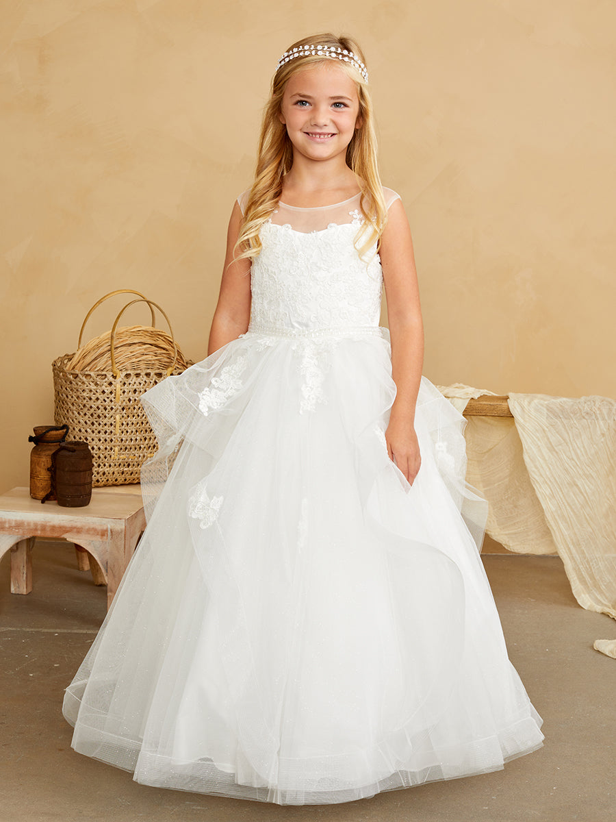 TIPTOP KIDS AS5850 - Gorgeous Lace Bodice with a Sparkling Glitter Tulle Layered Horse Hair Trim Skirt with Scattered Lace.