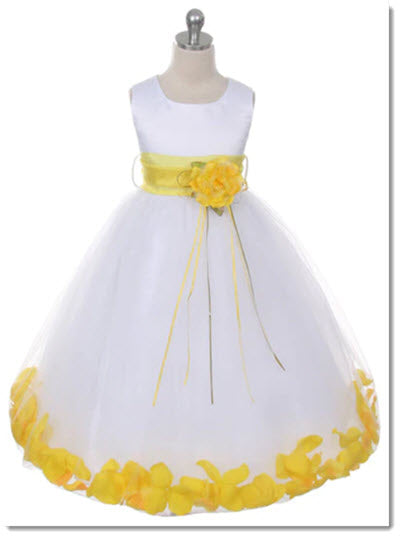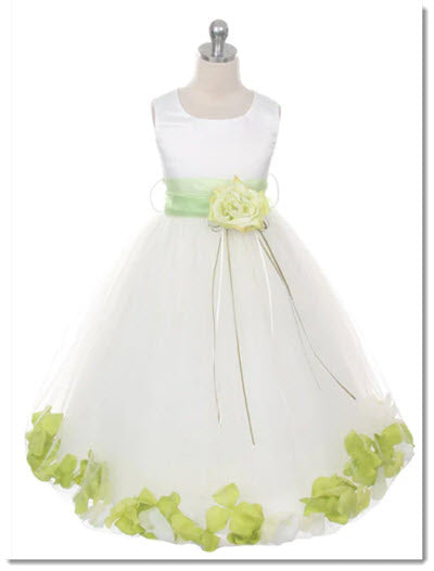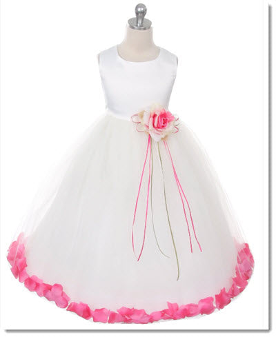 Flower petal dress with sequin bodice and floating flower petals inside the skirt. Customize the dress with one of our many different petal colors.