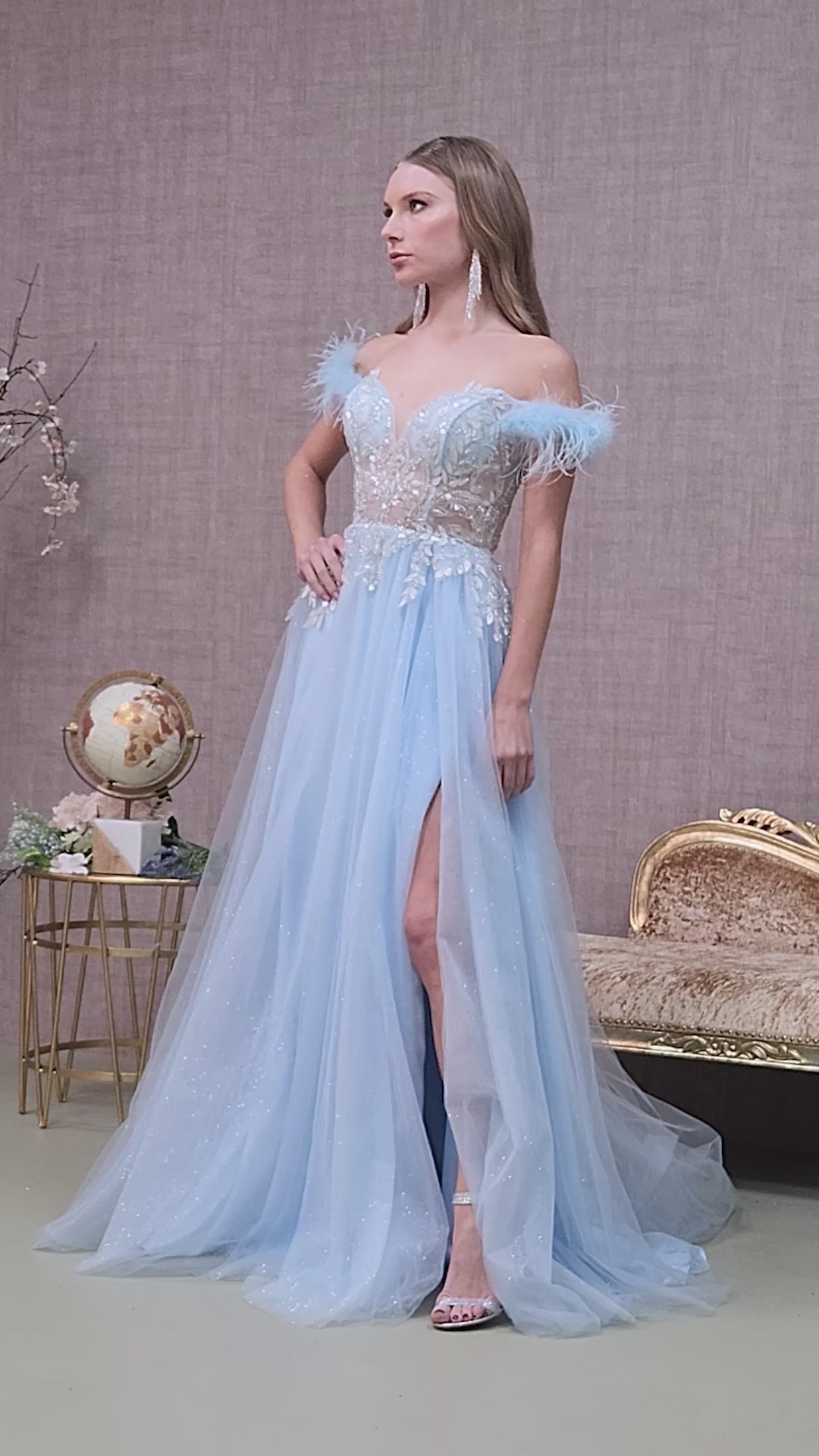 Shop our collection from GLS by Gloria - GL3135. Mesmerizingly crafted in mesh fabric with lovely bead adornments and leaf appliques, this ballgown features an off the shoulder, sweetheart neckline with feathered short sleeves. Structured with corset boning highlighting your contours while the back is secured with a concealed zipper for a perfect fit.