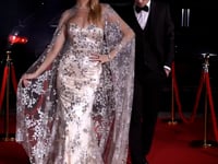 Strapless Glitter Print Gown with Cape By Ladivine J834 - Women Evening Formal Gown - Special Occasion/Curves