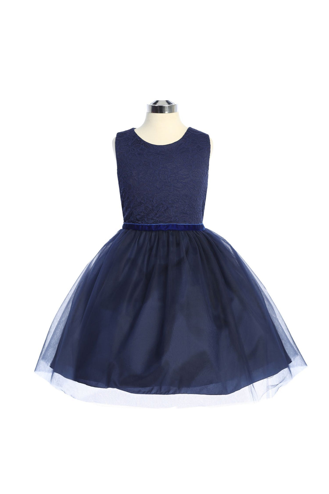 Stretch Lace Tulle Velvet Trim Girl Party Dress Plus Size by AS528+ Kids Dream - Girl Formal Dresses