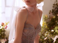 • Design: Sweetheart neckline, embroidered aquamarine motif & tie tulle shoulder straps
